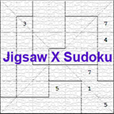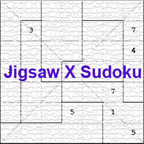 Jigsaw diagonal Sudoku is also referred to Jigsaw X Sudoku. It is another type of standard Sudoku. Based on Jigsaw Sudoku, Jigsaw Diagonal Sudoku adds another two diagonal lines. Numbers on each diagonal line cannot be repetitive. Jigsaw diagonal Sudoku puzzles on Sudoku.cool have seven sizes of 4x4,5x5,6x6,7x7,8x8,9x9 with ten difficulty levels. By pressing “New Puzzle...”, you can choose game size and difficulty level.